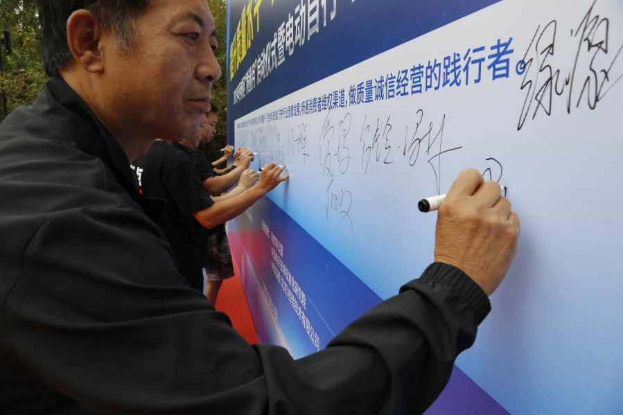 正在随后的企业许诺环节中,2名来自电动自行车品牌方和发卖企业的代表上台《质量书》,许诺将严酷遵照新国标要求,出产流程管控到终端发卖办事全链条把控质量,抵制不法拼改拆、发卖不及格产物等行为,以高质量产物帮力质量强区扶植。随后,一笔一划不只是对消费者的许诺,更彰显了企业自动参取质量共治的义务担任。
