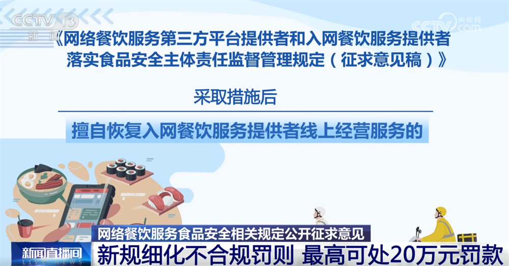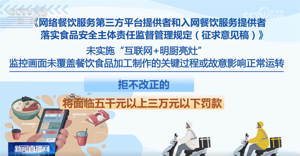 记者16日从市场监管总局领会到,为进一步加强收集餐饮办事食物平安监管,《收集餐饮办事第三方平台供给者和入网餐饮办事供给者落实食物平安从体义务监视办理(收罗看法稿)》面向社会公开收罗看法。这份办理收罗看法稿有哪些亮点?一路来领会。收罗看法稿明白了平台供给者收集餐饮办事食物平安从体义务,要求对入网餐饮办事供给者的运营天分、加工制做、卫生等进行监测和抽查。每月线下抽查入网餐饮办事供给者的比例不低于百分之五,两年内实现全笼盖。监测和抽查成果留存备查,留存刻日不得少于2年。平台供给者该当将入网餐饮办事供给者运营天分取省级市场监视办理部分从体天分消息进行校验比对,校验不成功的不得上线运营。画面笼盖餐饮食物加工制做的环节过程,并一般运转。同时,要求不得将订单委托其他餐饮办事供给者加工制做。对餐饮食物进行包拆、封口,并封口后无法回复复兴和便于消费者辨识,防止餐饮食物正在配送过程中遭到污染。
